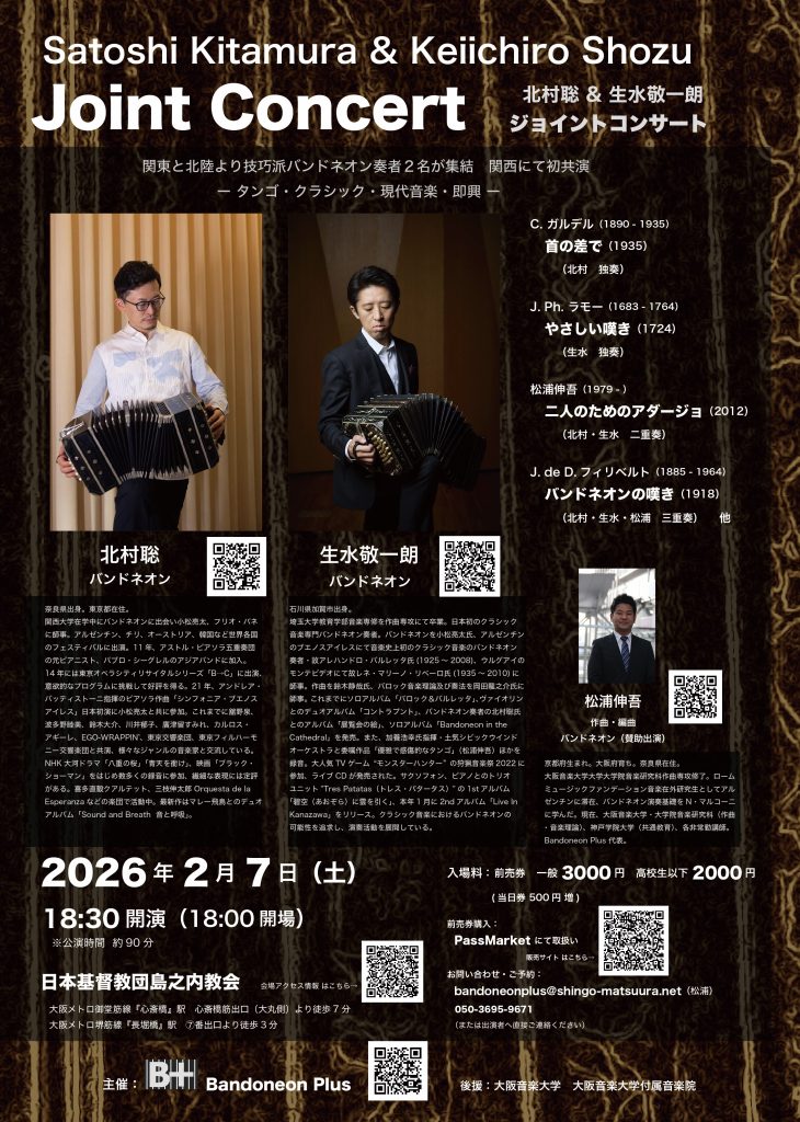 関東と北陸より技巧派バンドネオン奏者2名が集結 関西で初共演